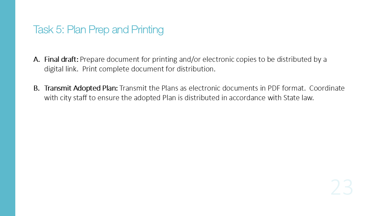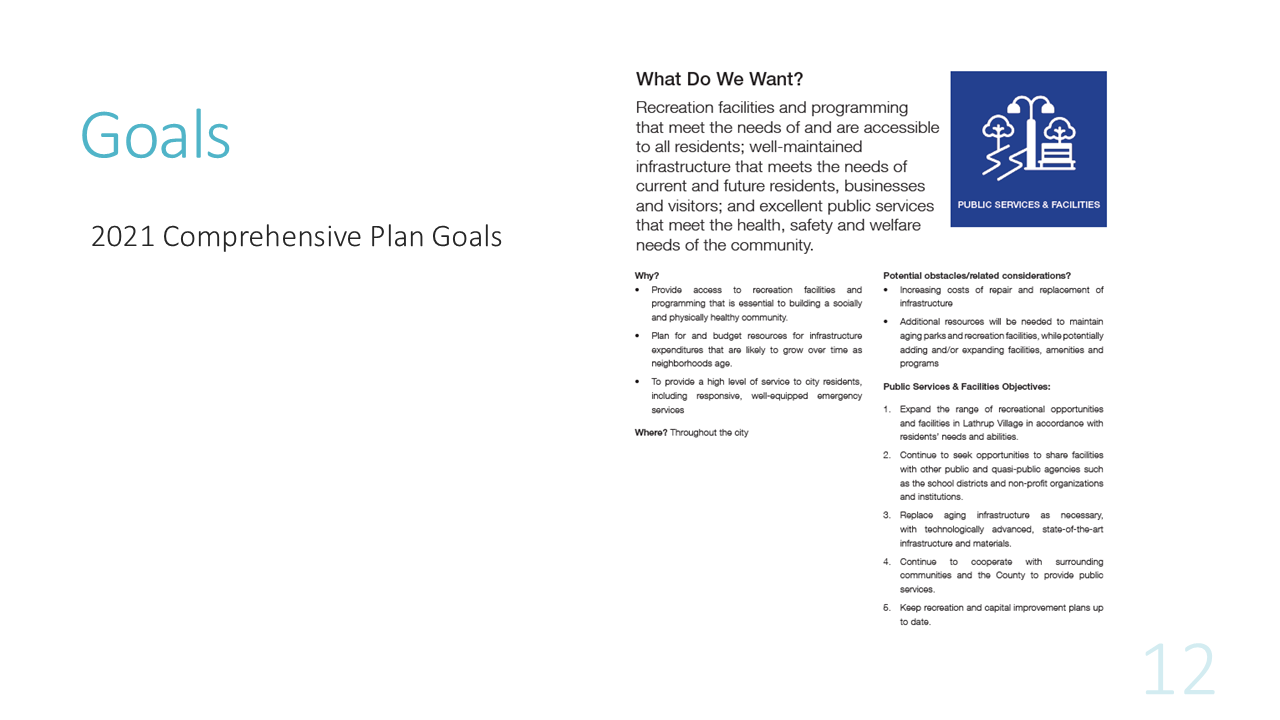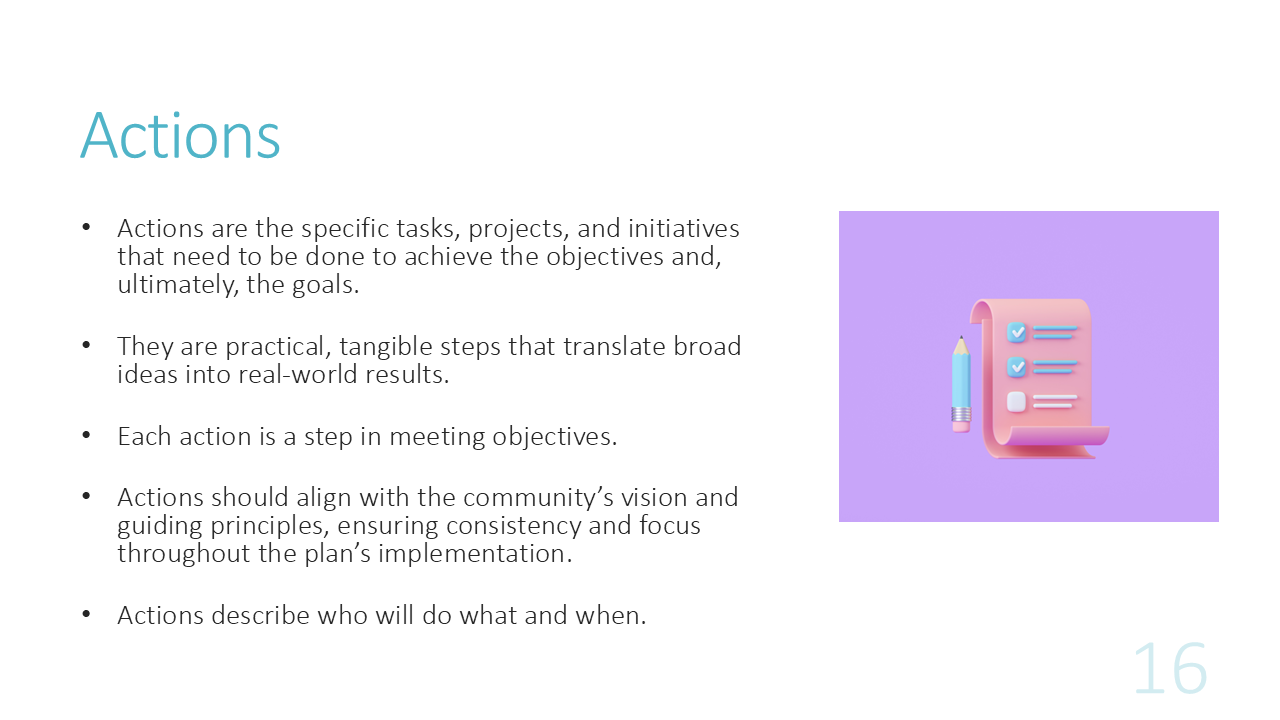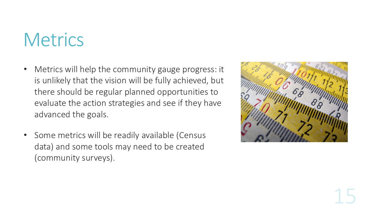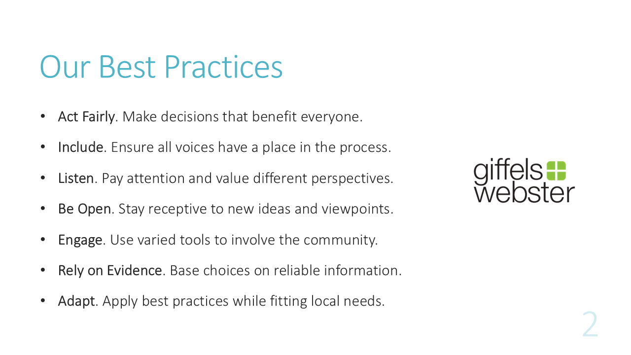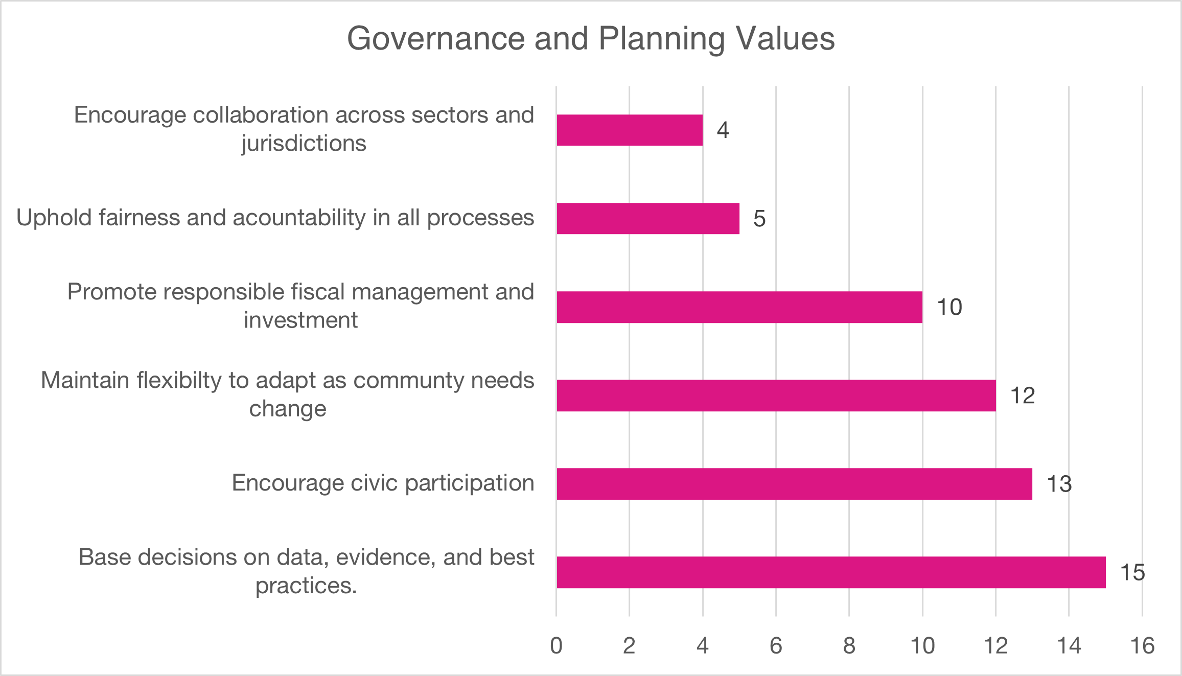 Guiding principles are statements that will be used to direct strategies in the comprehensive update to ensure they align with the community’s values. They are a very broad framework that allow for a lot of flexibility (as the update process is dynamic and ongoing) but also act as the first step toward focusing in on what the community needs from the update process.