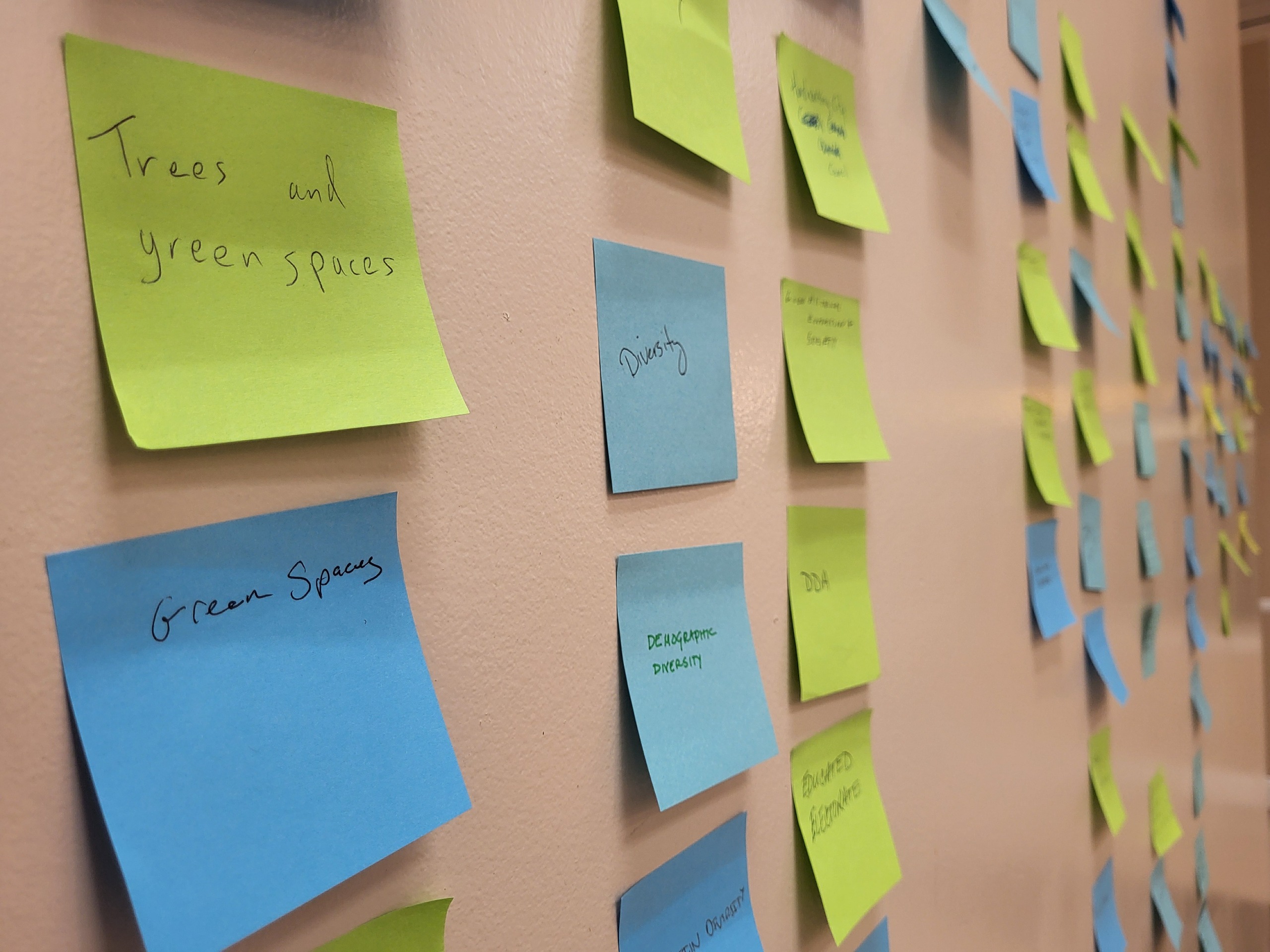 The Comprehensive Plan Update process was kicked off by tapping into the thoughts of the City's elected and appointed officials. The goal of this leadership meeting was to set some guiding principles for the planning process and build a shared foundation for the City's strengths and weaknesses today. This meeting included two activities that invited attendees to participate and give their input on the process.